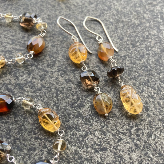 Montana Agate, Citrine, Smoky Quartz & Sterling Silver Earrings