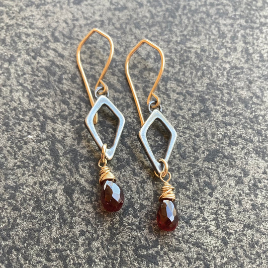 Mozambique Garnet & Mixed Metal Diamond Link Earrings