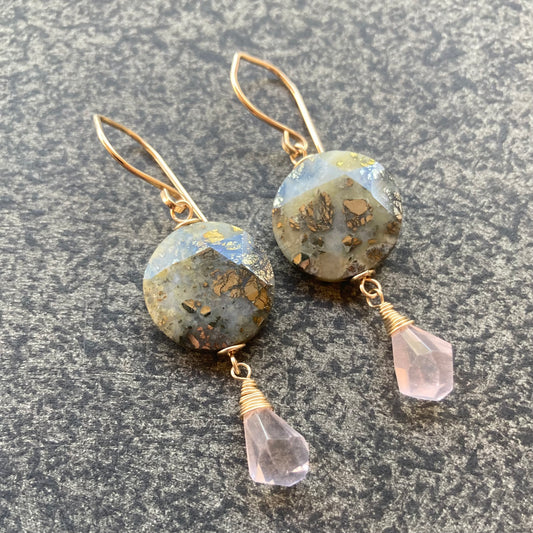 Nipomo Marcasite in Agate, Rose Quartz & Gold Earrings
