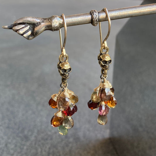 Tundra Sapphire & Mixed Metal Skull Cascade Earrings