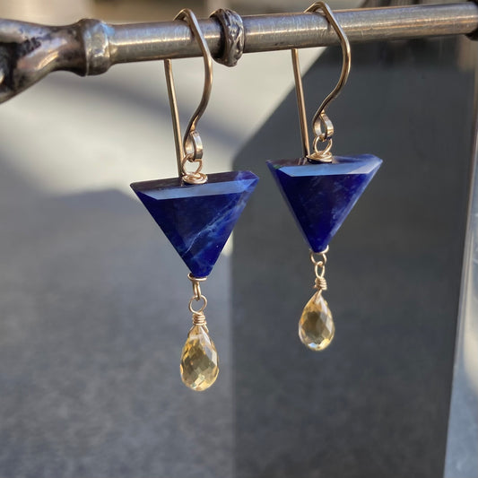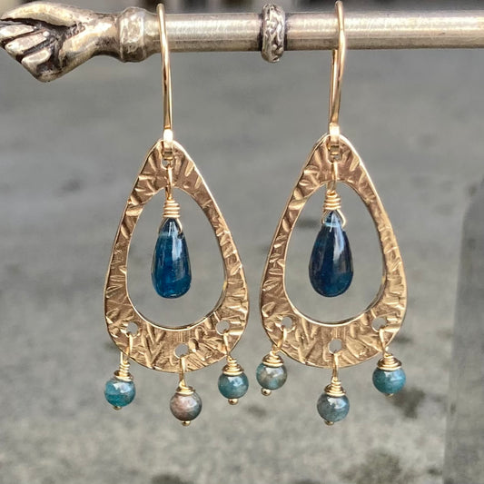 Neon Blue Kyanite, Gold & Bronze Fringe Hoops