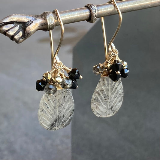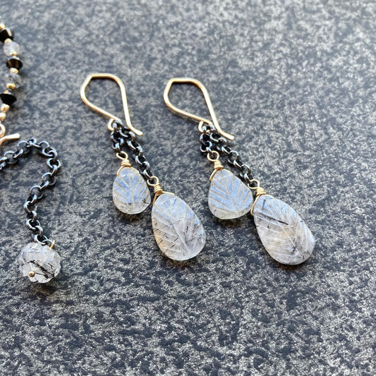 Black Rutilated Quartz & Mixed Metal Tassel Earrings