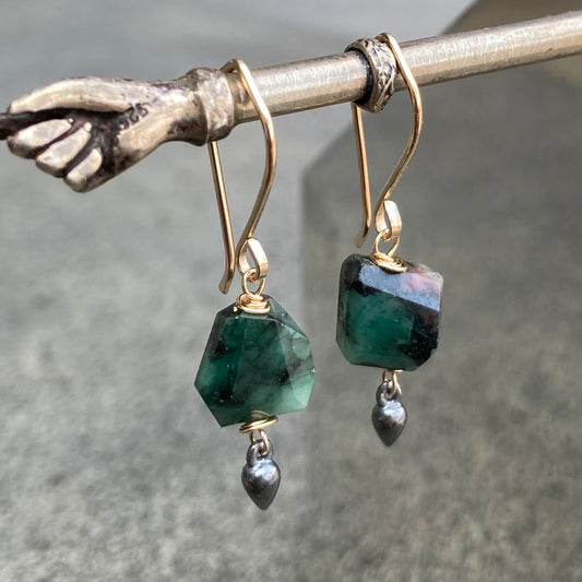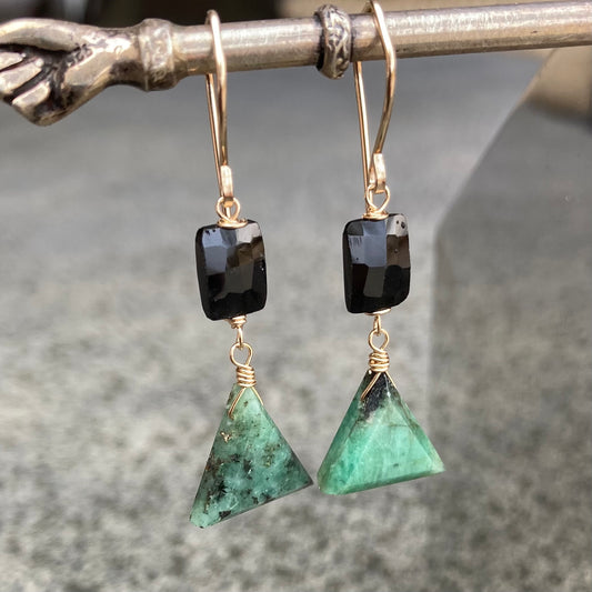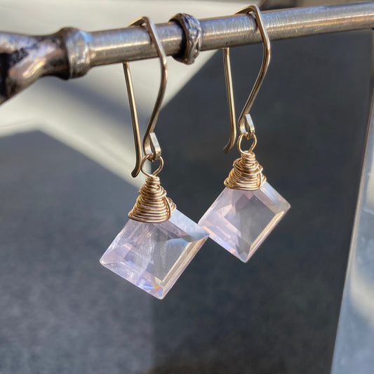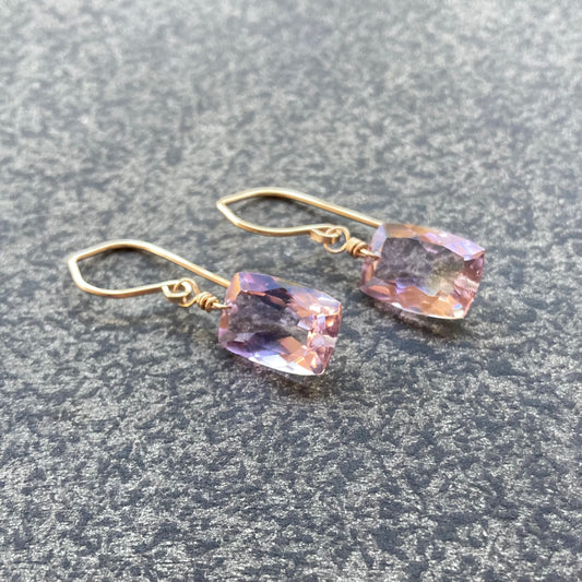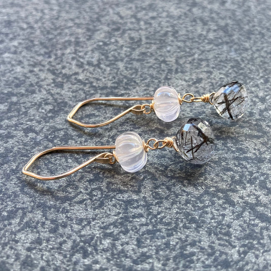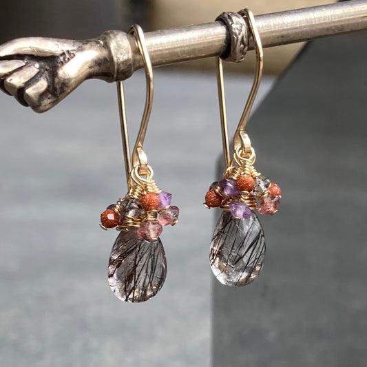 Black Rutilated Quartz, Rose Quartz & Gold Earrings