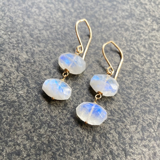 Rainbow Moonstone & Gold Earrings