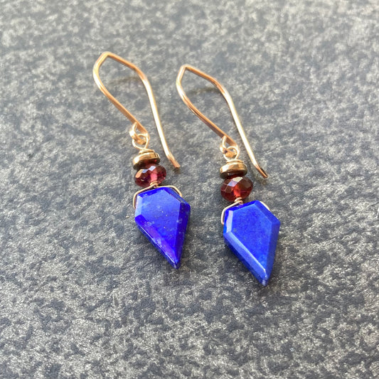 Lapis, Mozambique Garnet, Pyrite & Gold Earrings