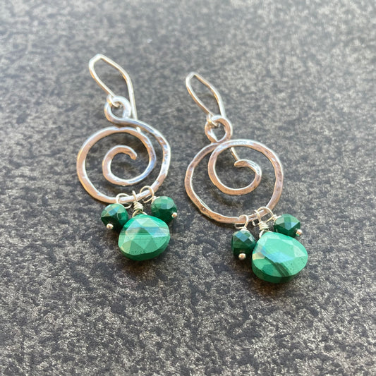 Malachite & Sterling Silver Spiral Hoops