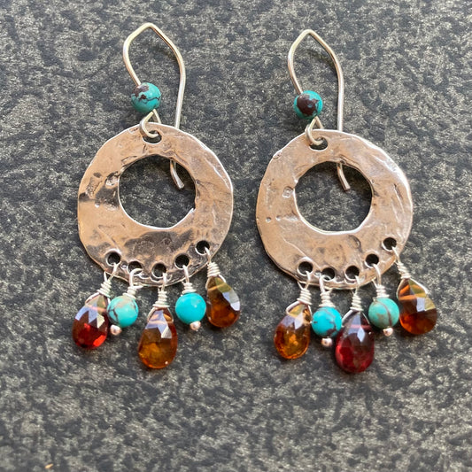 Turquoise, Tundra Sapphire & Sterling Silver Fringe Hoops