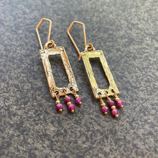 Natural Ruby, Gold & Bronze Fringe Rectangle Hoops