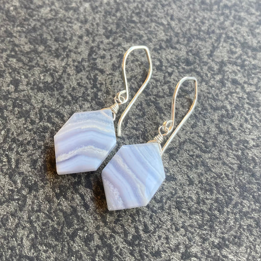 Blue Lace Agate & Sterling Silver Earrings