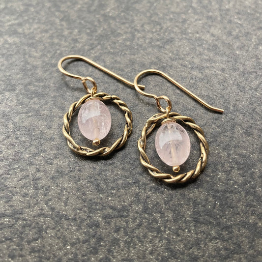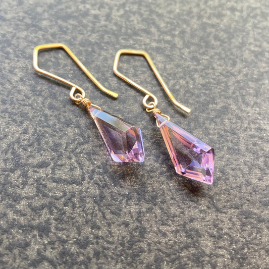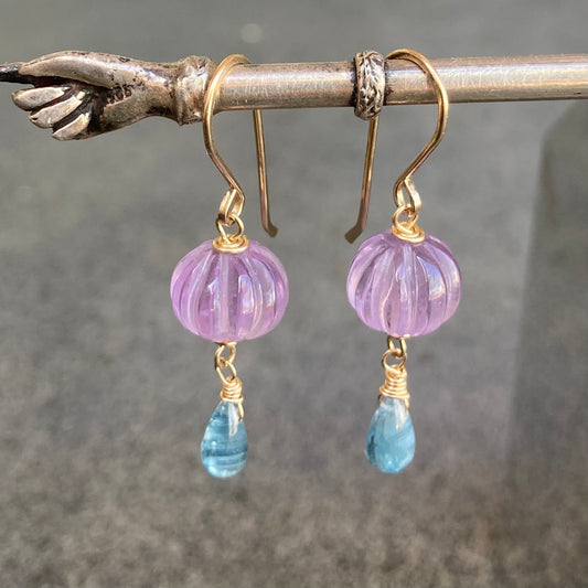 Pink Amethyst, Aqua Kyanite & Gold Earrings