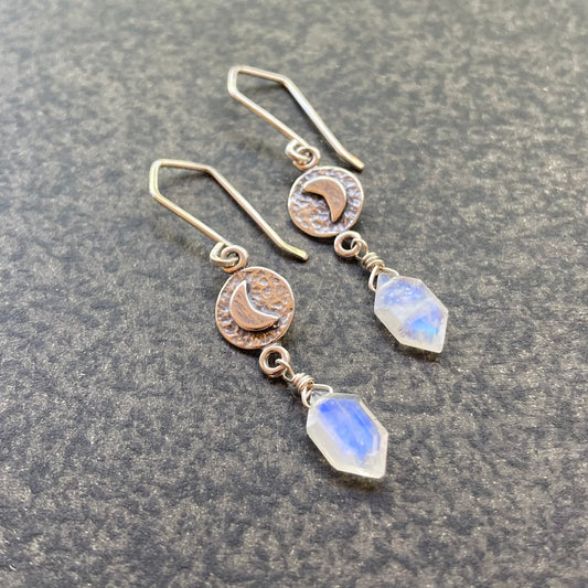 Rainbow Moonstone & Sterling Silver Moon Coin Earrings