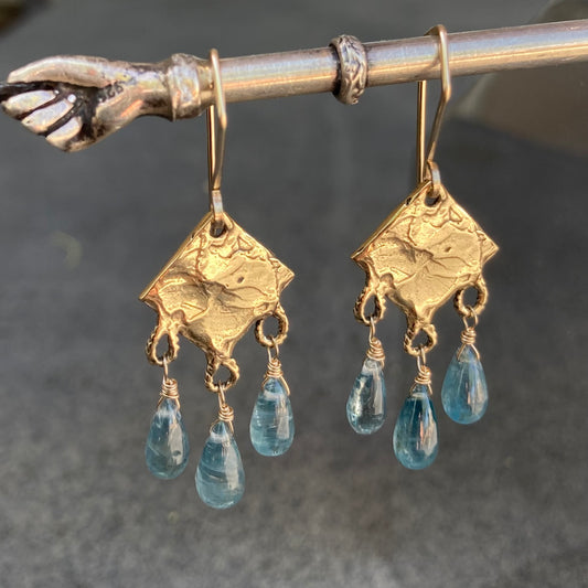 Aqua Kyanite & Mixed Metal Fringe Earrings