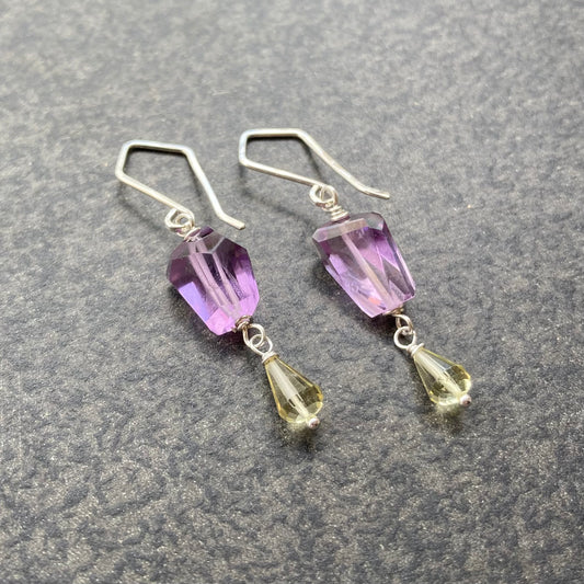 Amethyst, Lemon Quartz & Sterling Silver Earrings