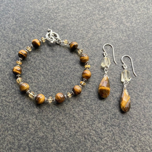 Golden Tiger Eye, Citrine & Sterling Silver Earrings