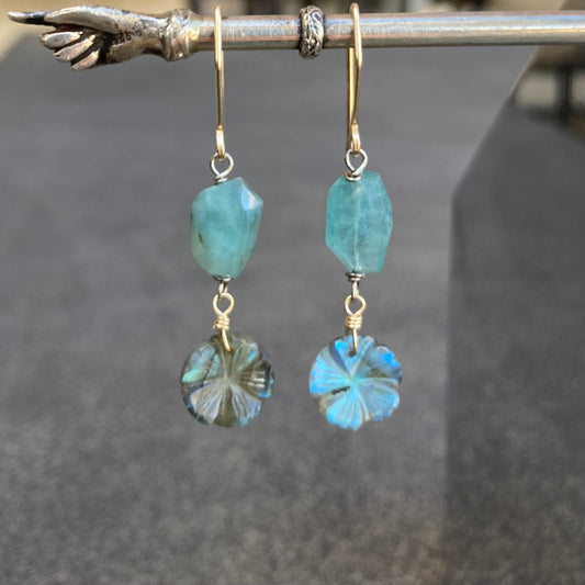 Grandidierite, Labradorite & Mixed Metal Flower Earrings