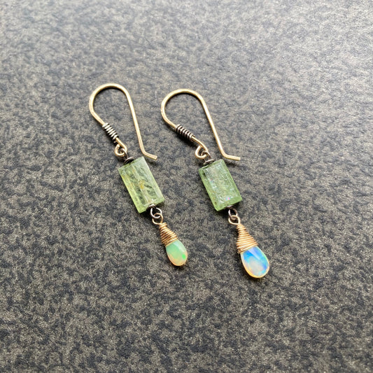 Ethiopian Opal, Green Kyanite & Mixed Metal Earrings