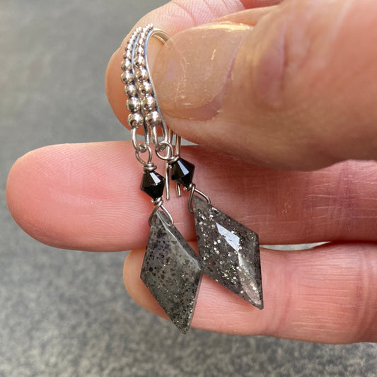Black Sunstone, Black Spinel & Sterling Silver Earrings