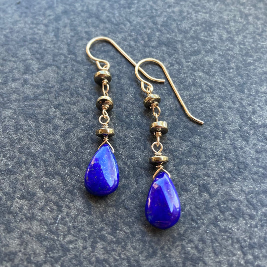 Lapis Lazuli, Pyrite & 14k Gold Earrings