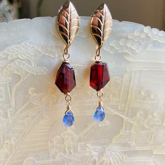 Mozambique Garnet & Tanzanite Bronze Leaf Studs