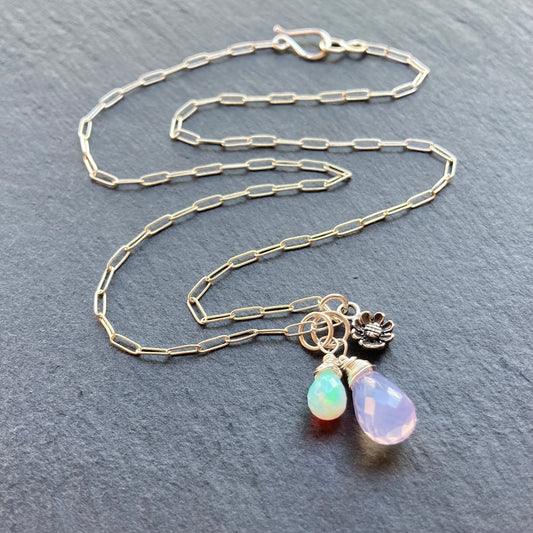 Scorolite, Ethiopian Opal & Sterling Silver Cherry Blossom Charm Necklace
