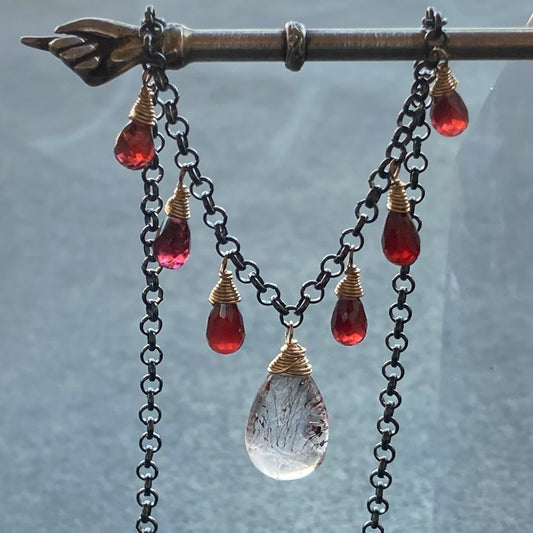Lepidocrocite, Mozambique Garnet & Mixed Metal Charm Choker