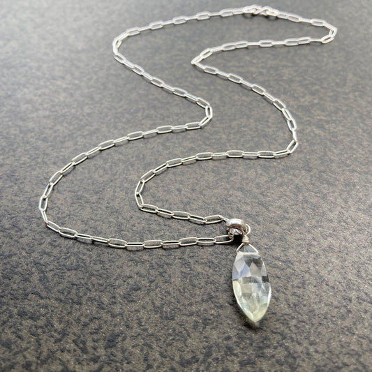 Moss Agate & Mixed Metal Marquis Pendant Necklace