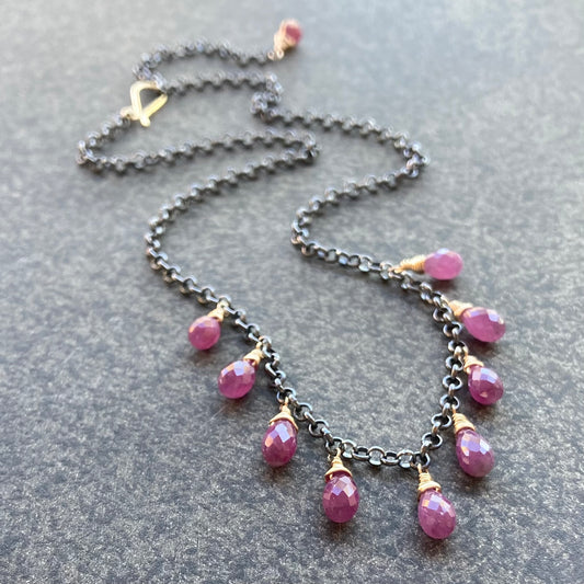 Mozambique Garnet & Mixed Metal Pendant Necklace