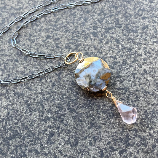 Nipomo Marcasite in Agate, Rose Quartz & Mixed Metal Pendant Necklace