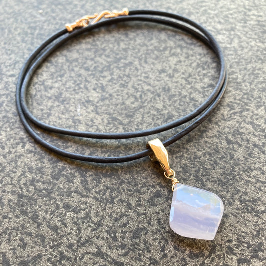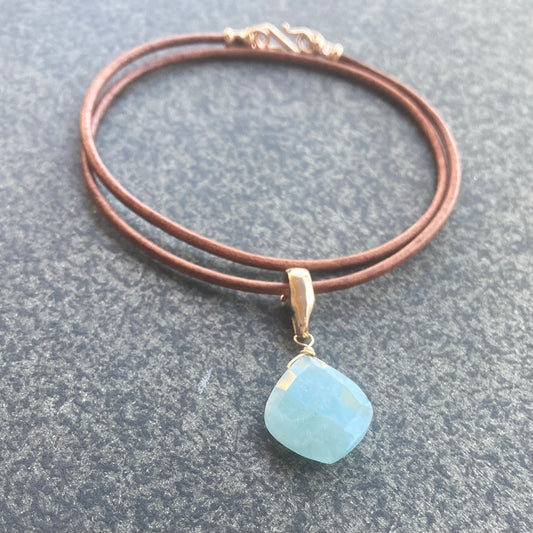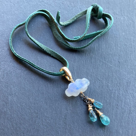 Rainbow Moonstone, Aqua Kyanite & Mixed Metal Monsoon Deertan Leather Choker