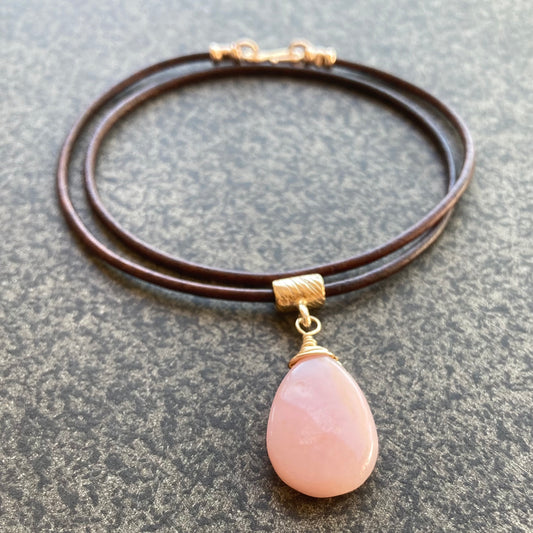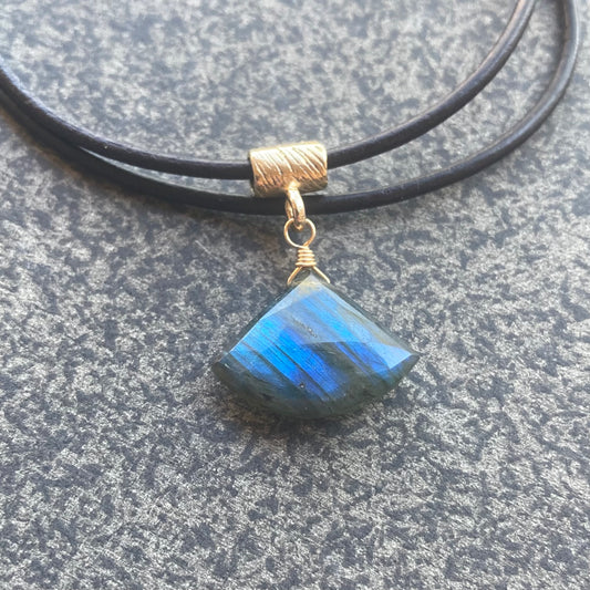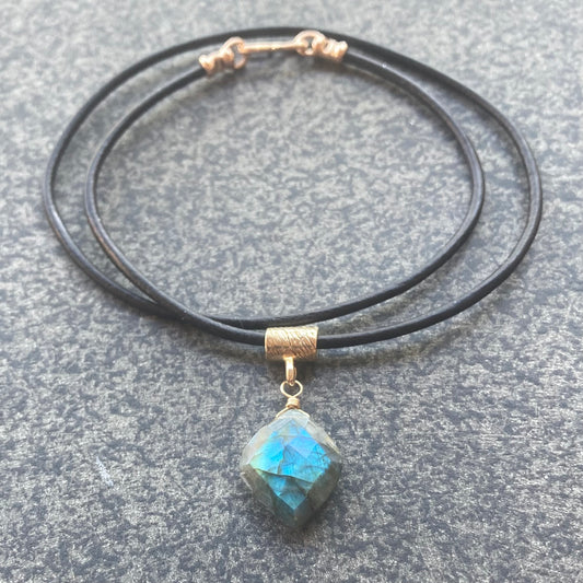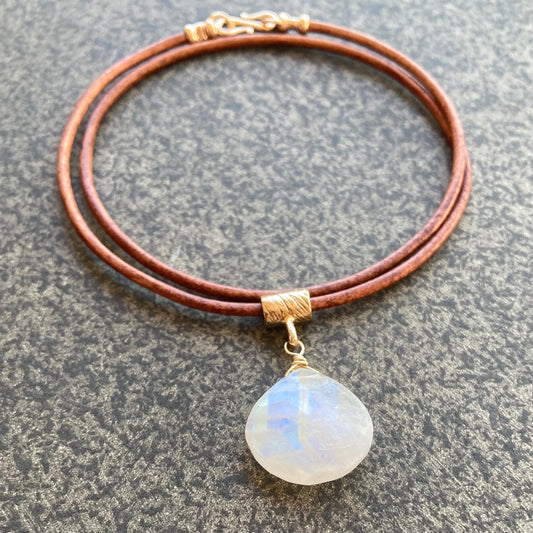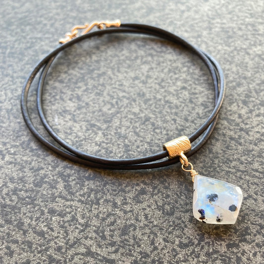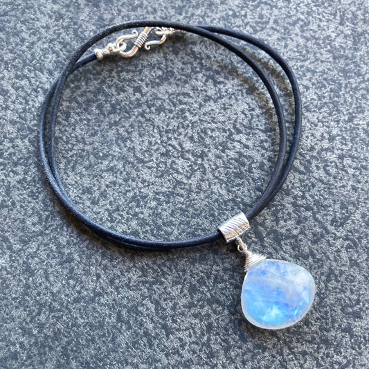 Rainbow Moonstone & Sterling Silver Leather Choker
