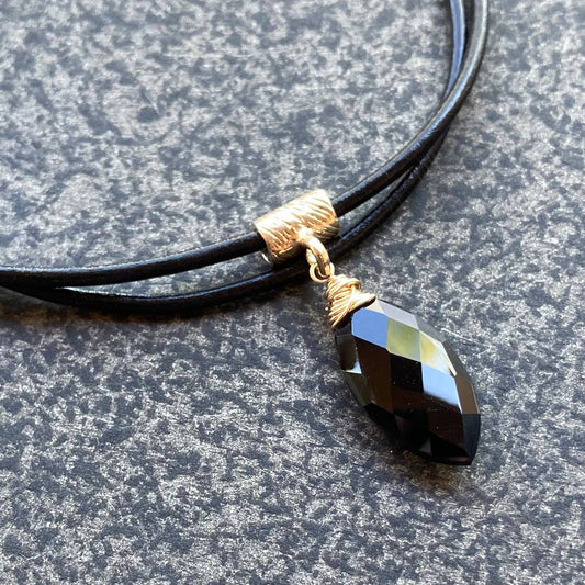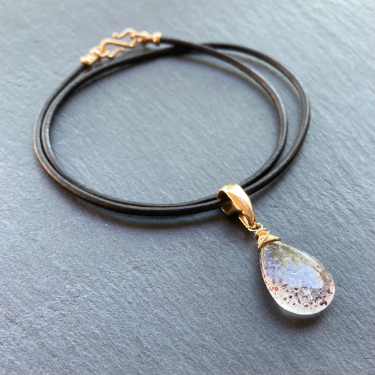 Tourmalinated Rainbow Moonstone & Bronze Leather Choker
