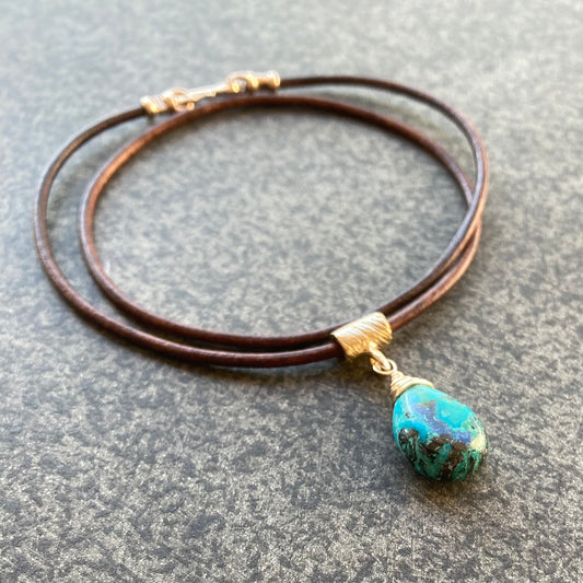 Carnelian & Bronze Autumn Bloom Deertan Leather Charm Choker