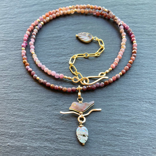 Black Mother of Pearl, Natural Ruby & Gold Autumn Branches Choker