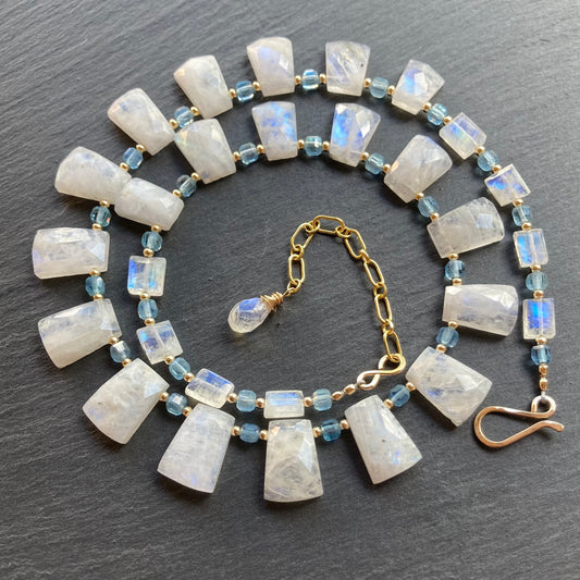 Rainbow Moonstone, Santa Maria Aquamarine & Gold Necklace