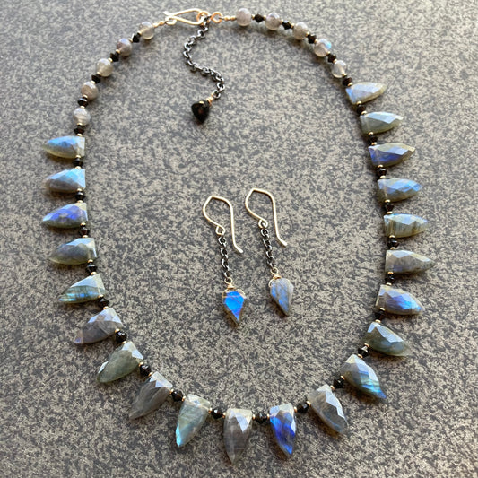 Dumortierite , Labradorite & Sterling Silver Winter Moon Pendant Choker