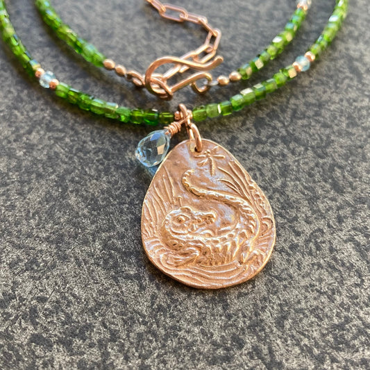 Chrome Diopside, Swiss Blue Topaz, Rose Gold & Bronze Everglades Pendant Choker