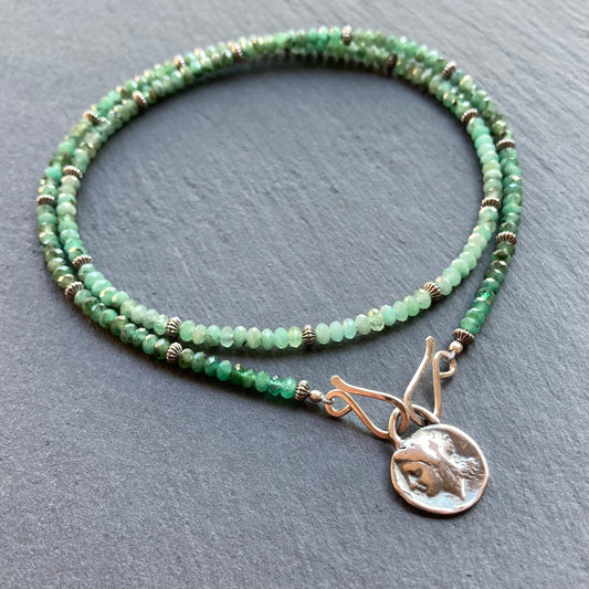 Natural Emerald & Sterling Silver Pegasus & Athena Coin Convertible Necklace