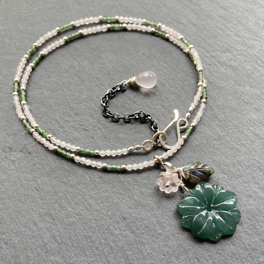 Rose Quartz, Sterling Silver & Guatemalan Jade Winter Succulent Necklace