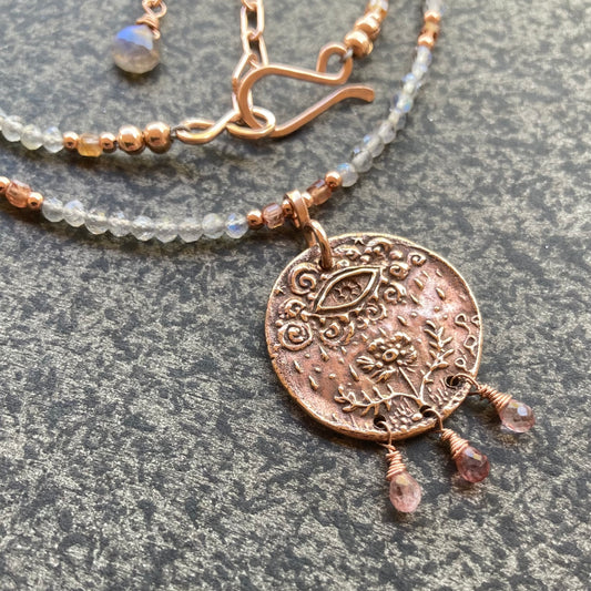 Labradorite, Spinel & Bronze Eye of Providence Pendant Choker