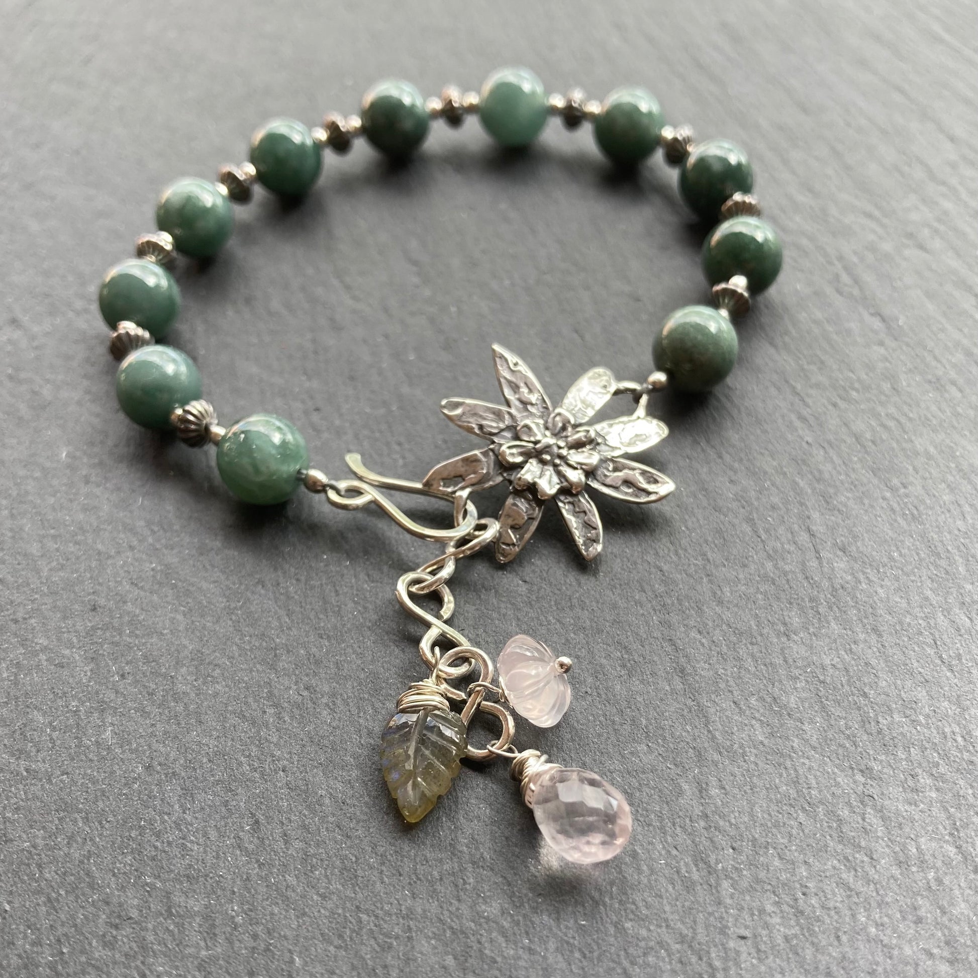 Guatemalan Jade & Sterling Silver Winter Succulent Bracelet