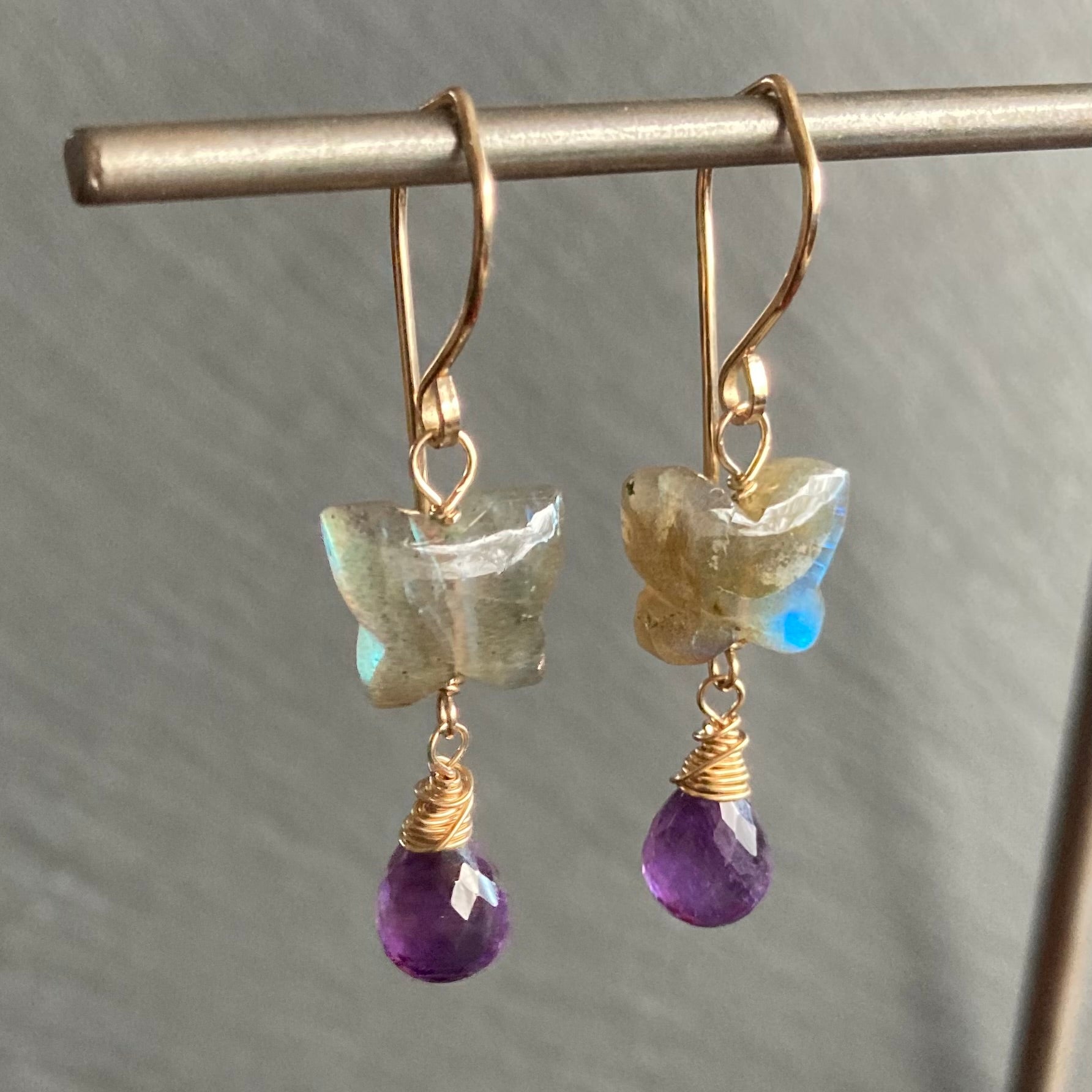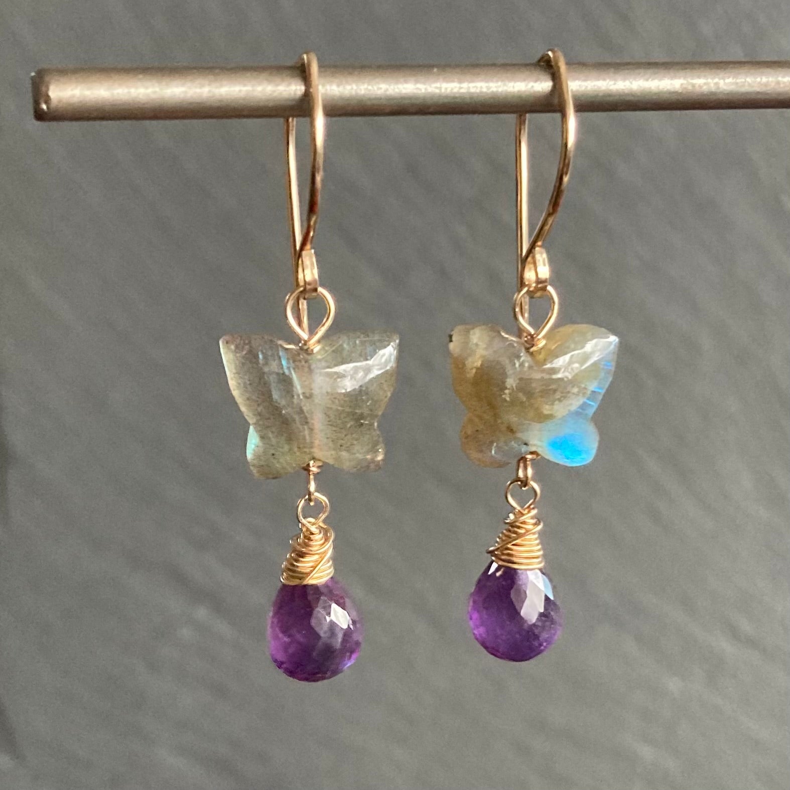 Labradorite, Amethyst & Gold Butterfly Earrings