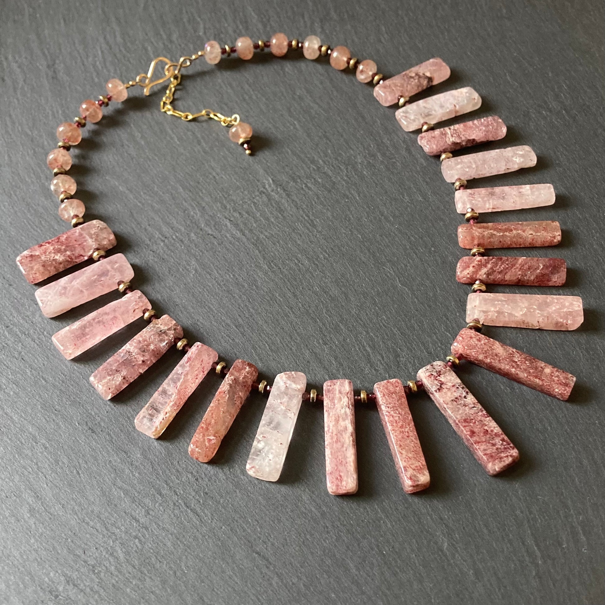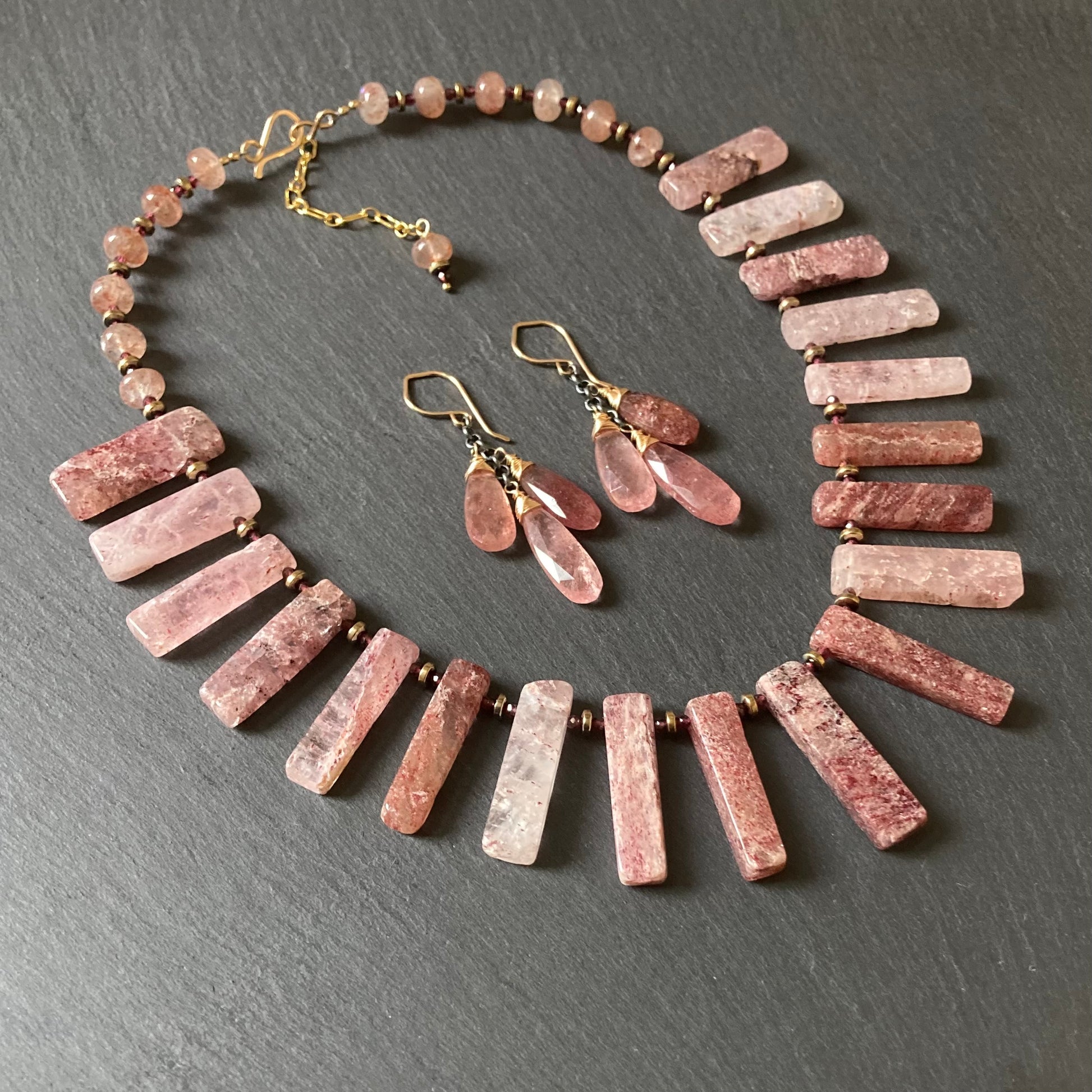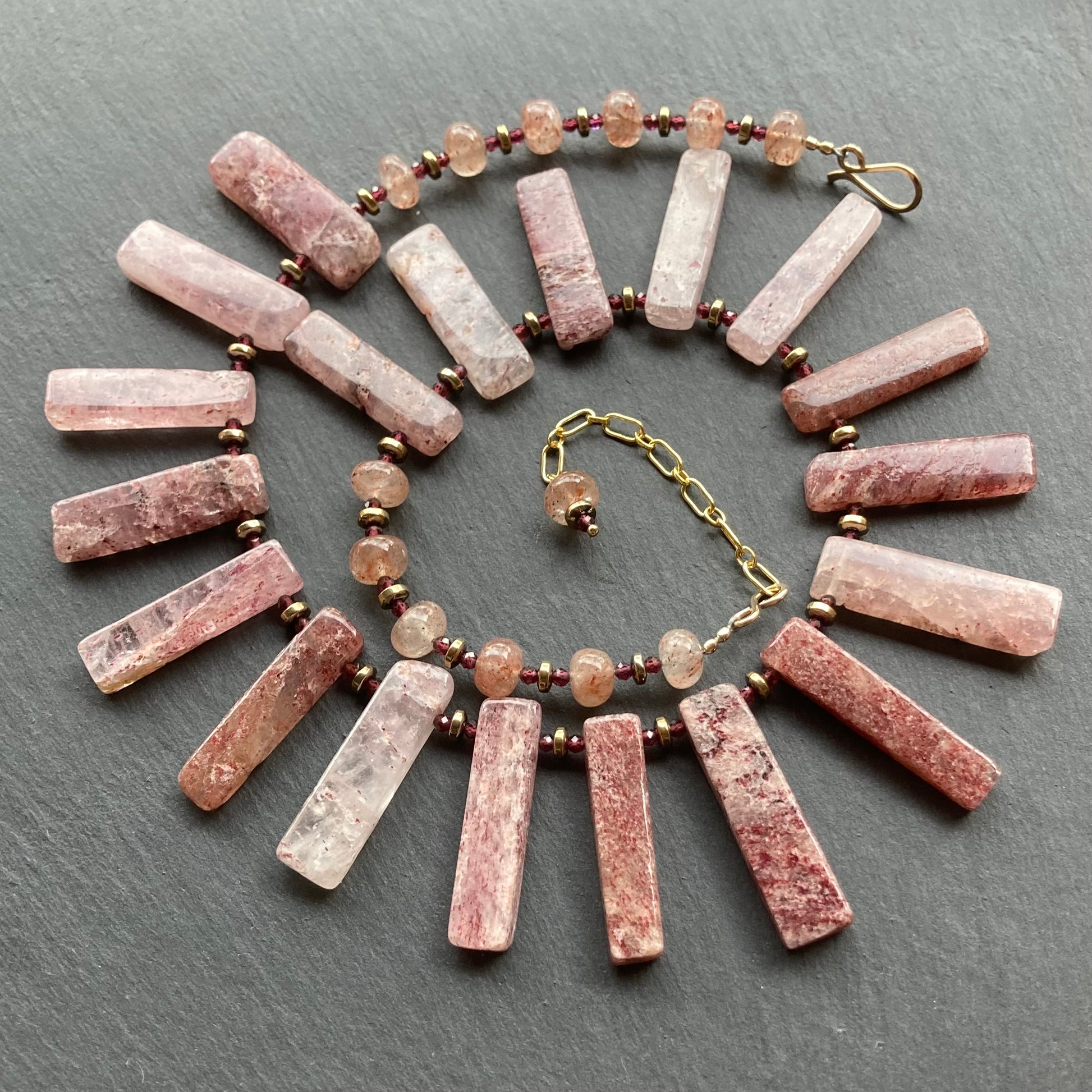 Strawberry Quartz, Garnet & Pyrite Collar