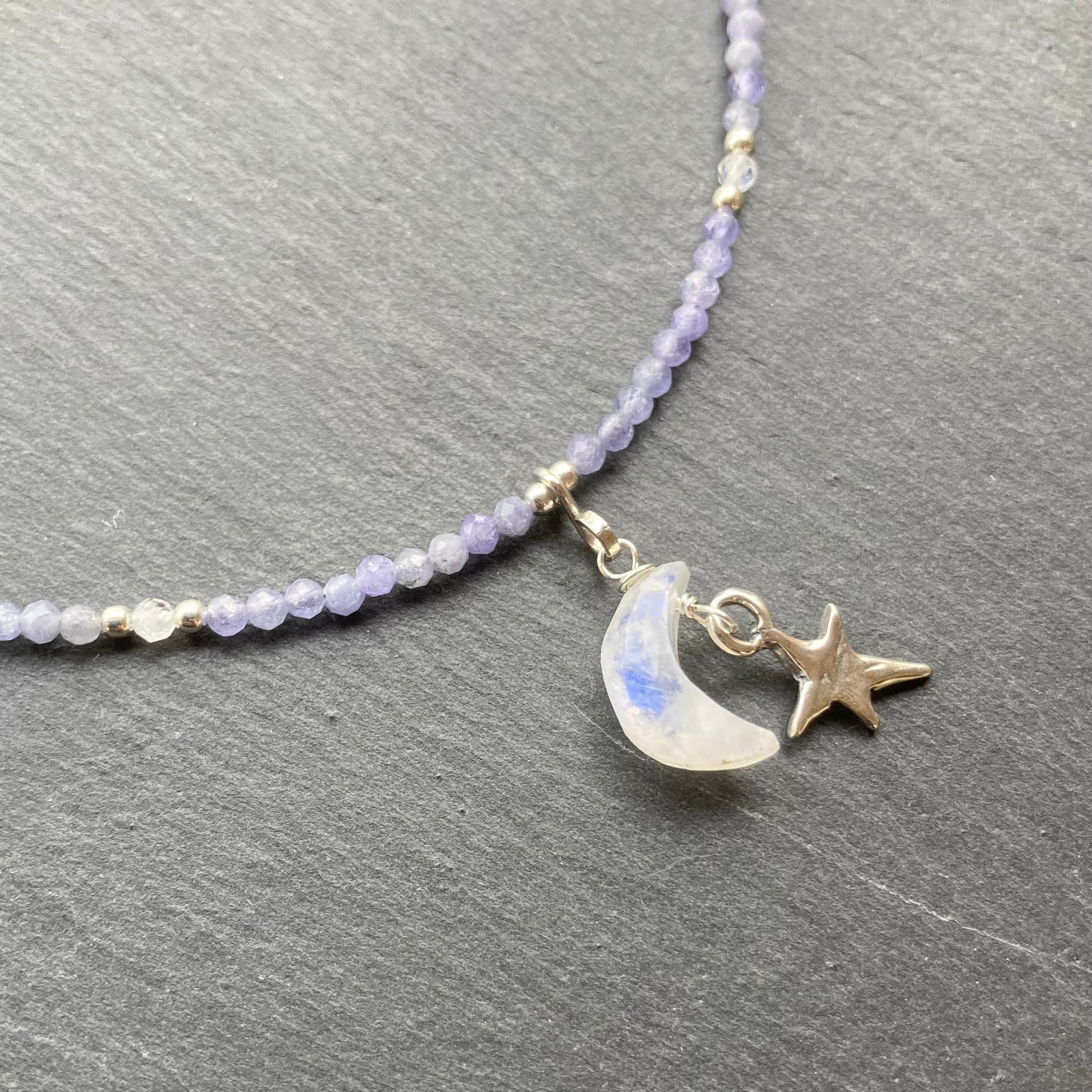 Tanzanite, Rainbow Moonstone & Sterling Silver Moonbeam Choker