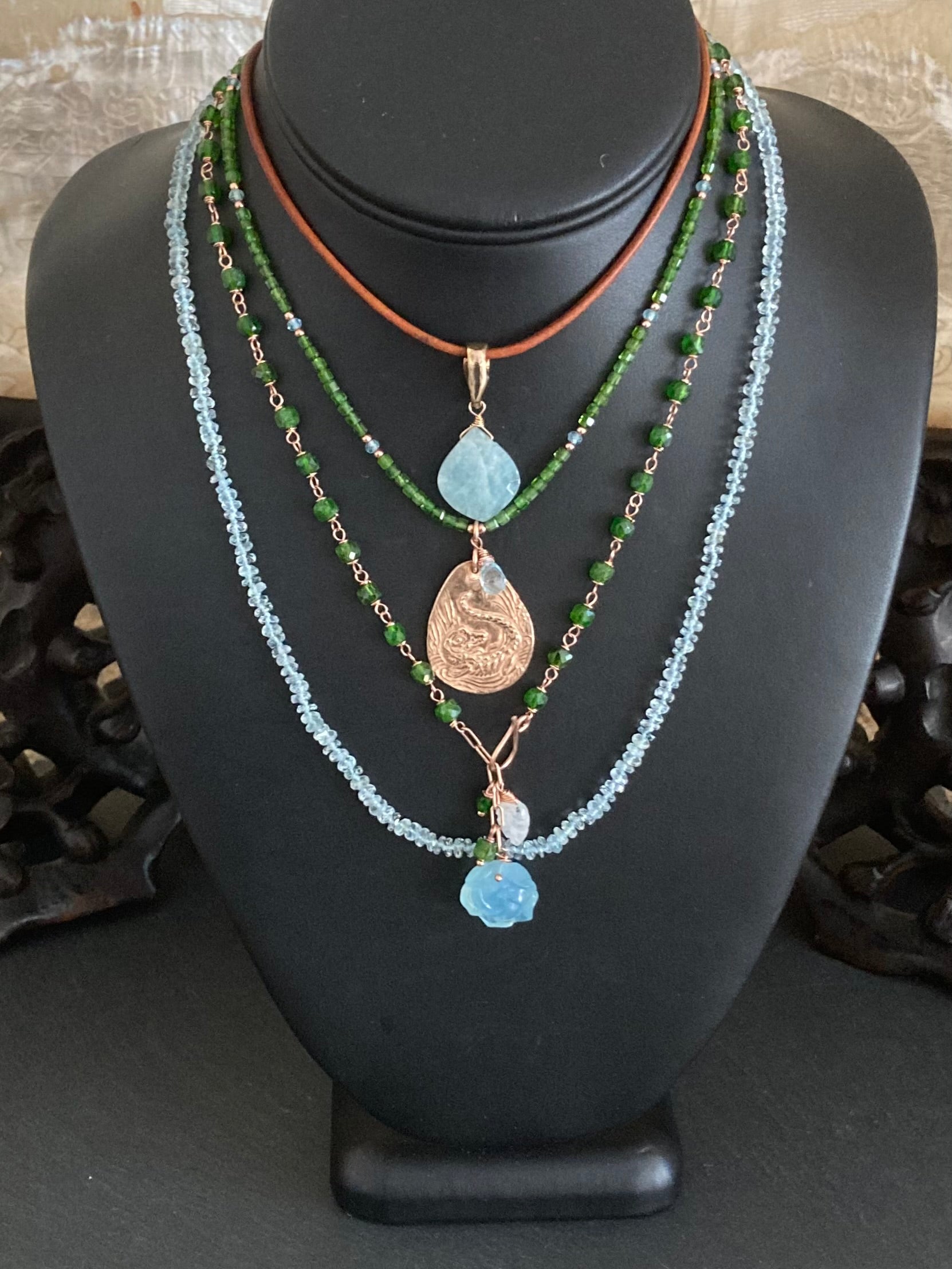 Aquamarine Hand Knotted Silk Necklace