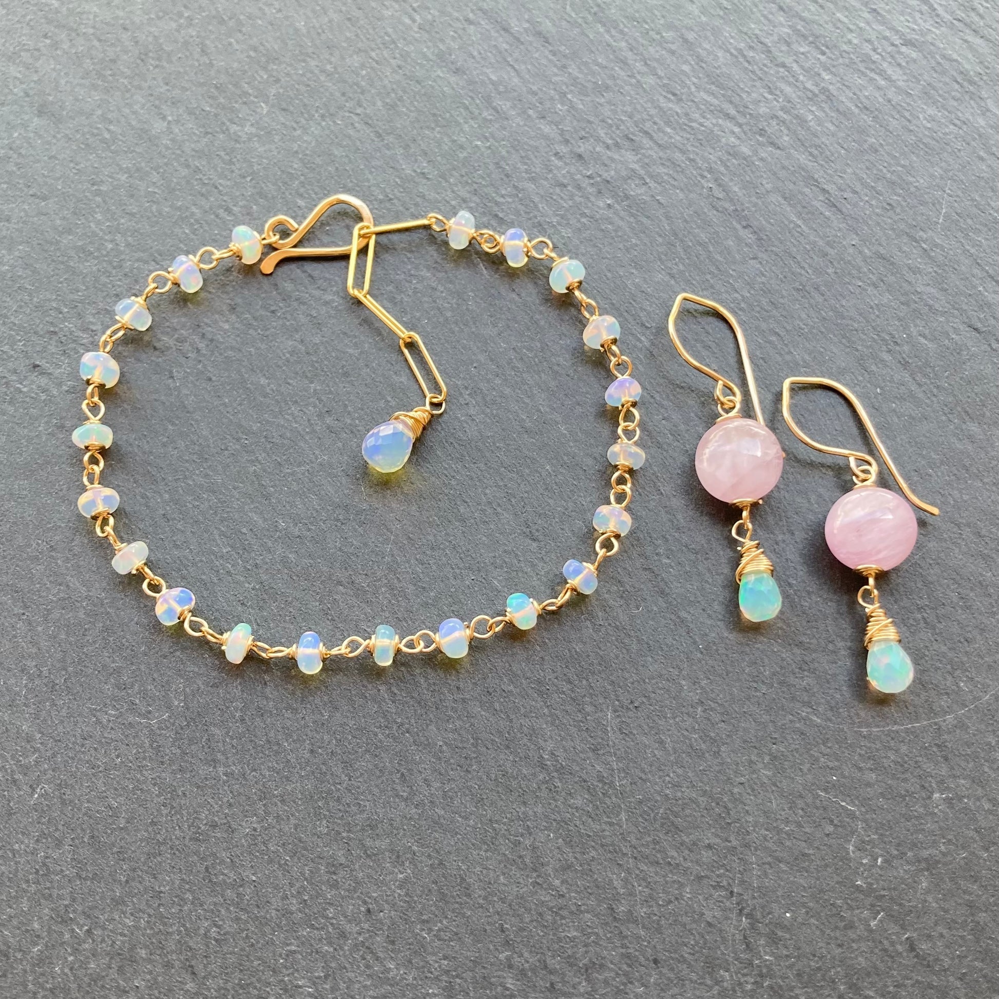 Kunzite, Ethiopian Opal & Gold Earrings