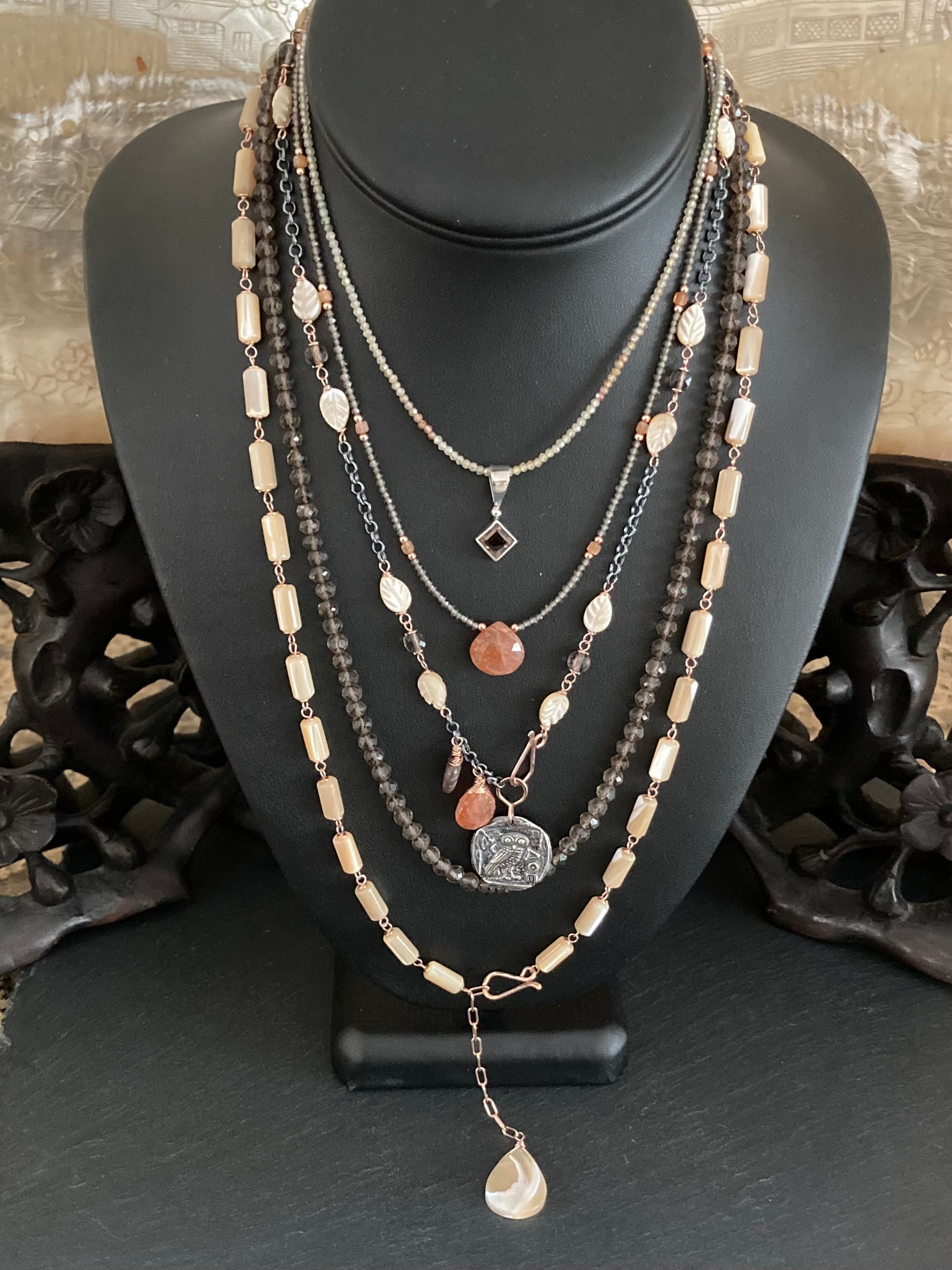 Natural Zircon, Smoky Quartz & Sterling Silver Pendant Choker