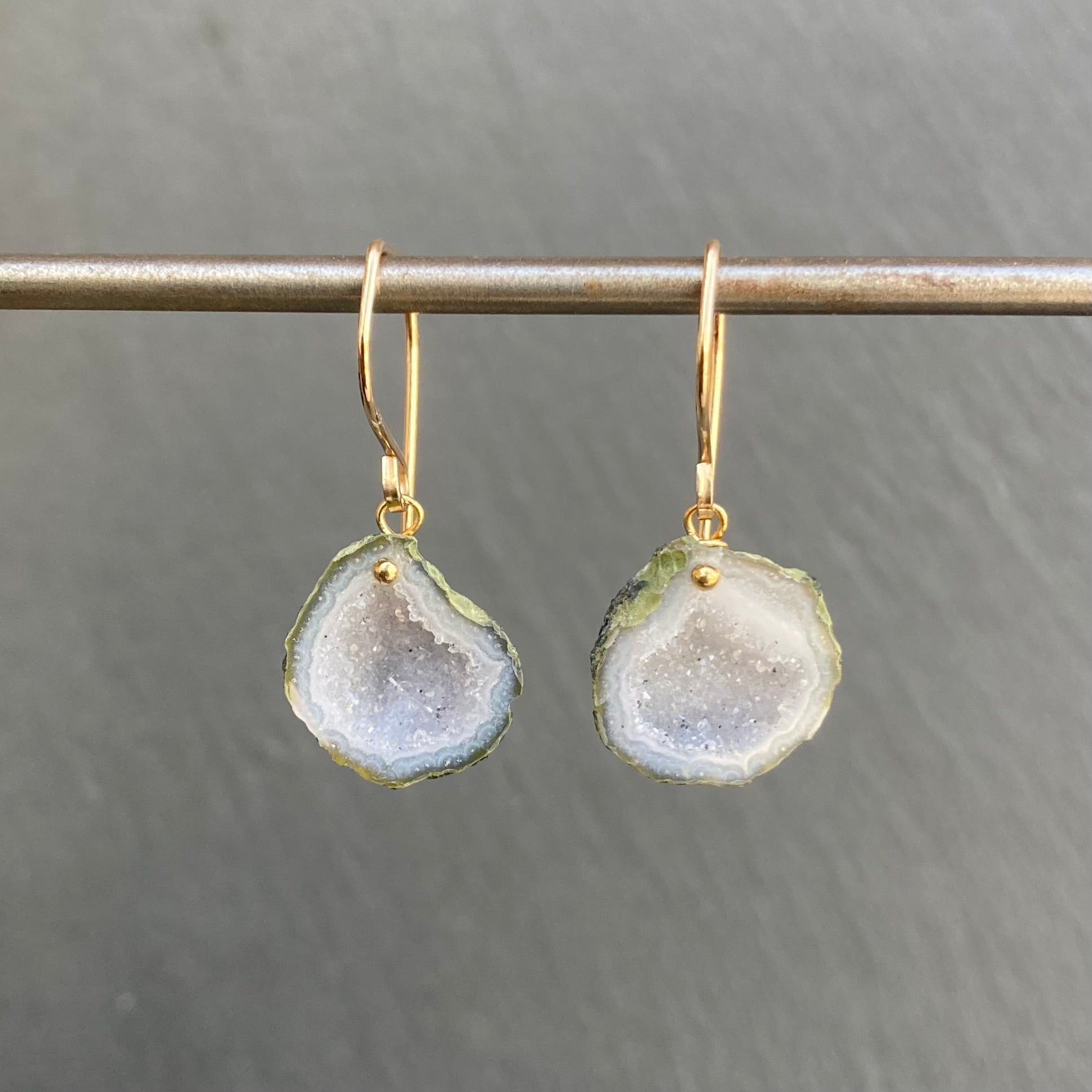 White Druzy Tabasco Geode & Gold Earrings